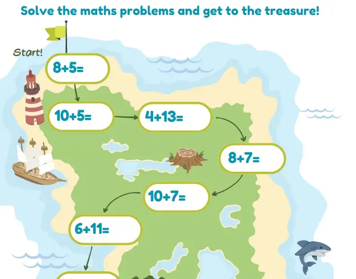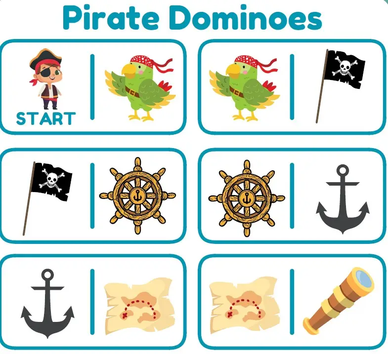Start with the Pirate and end when he has found his treasure. Match a picture on the domino and place the matching pictures together. This
