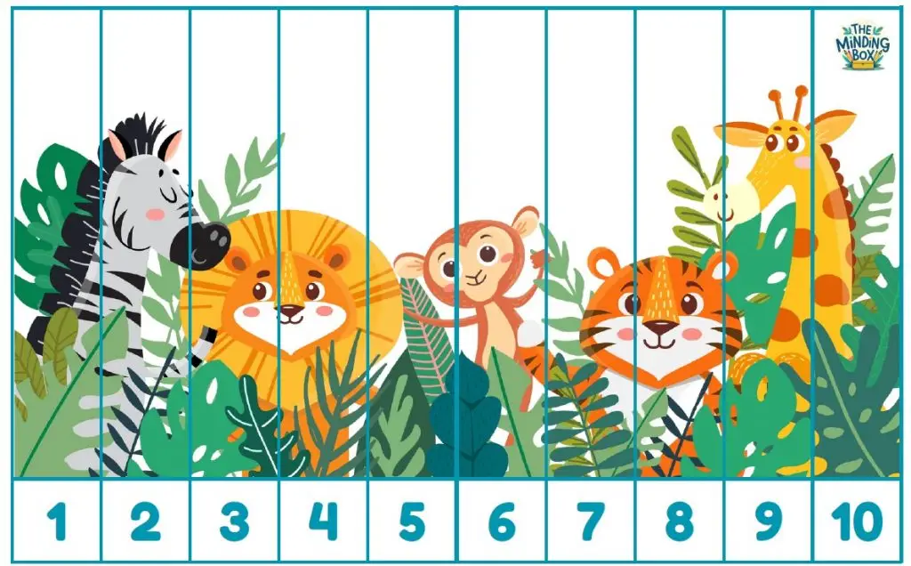 Here are 5 puzzles. Cut the strips up and put the images back together using the correct number order. Print PDF Download PDF Open PDF