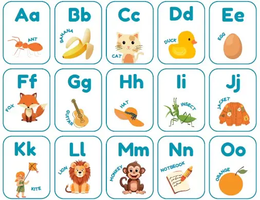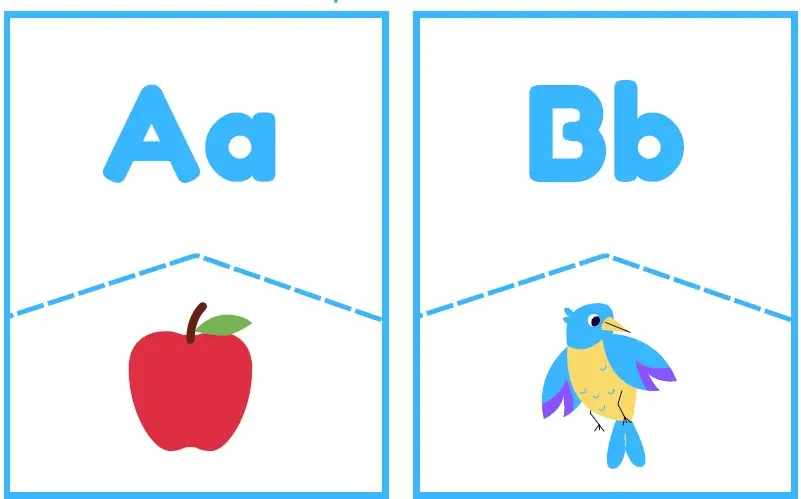 Cut out these flash cards and once children recognise the letters try cutting out the picture along the dotted line and get them to match