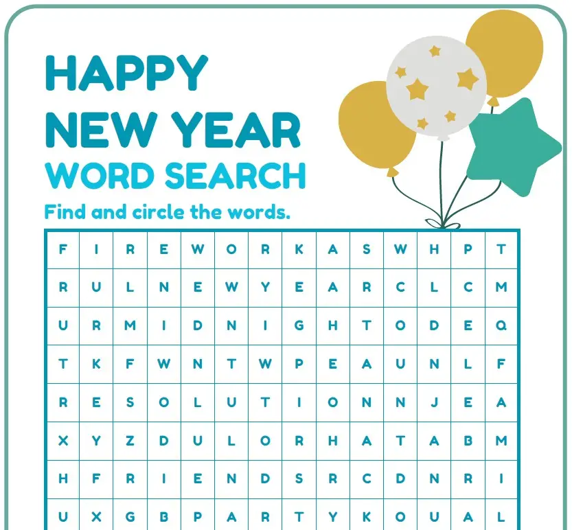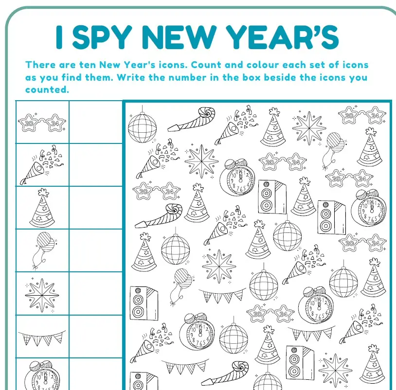 Firework Art Print PDF Download PDF Open PDF Read More » New Year Colouring Pages Print PDF Download PDF Open PDF Read More » New Year Resolutions Print PDF Download PDF Open PDF Read More » New Year- I Spy Print PDF Download PDF Open PDF Read More » New Year Word Search Print PDF Download PDF Open PDF Read More » New Year Planner Sheet Print PDF Download PDF Open PDF There are two versions available. The first version a child could draw a picture at the top. The second Read More »