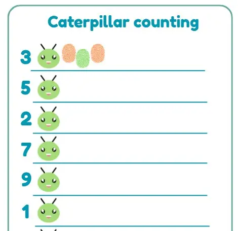 Put the correct number of finger prints on the caterpillar. If you don’t want to use paint you could use stickers, draw on or use