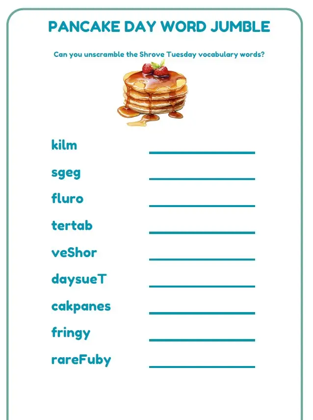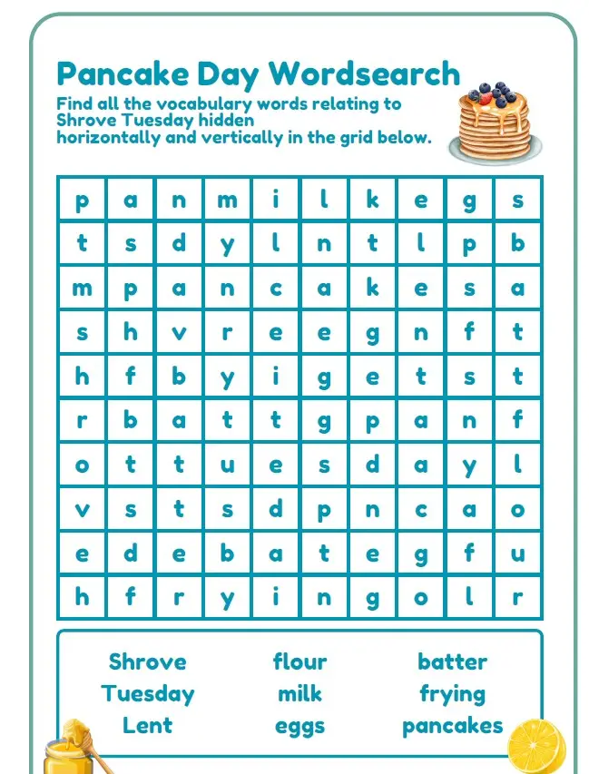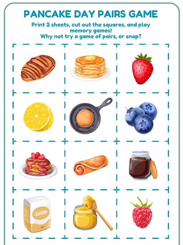 Below you’ll find a pancake template with a selection of pancake toppings to cut out. Children can use these to decorate their pancake however they